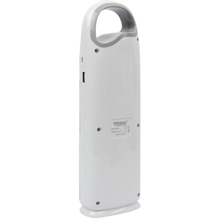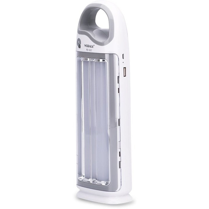چراغ اضطراری مدل WD-857 WIDASI ، محصولی کاربردی در مواقع قطعی برق یا کمپ در شب میباشد.جنس این چراغ از پلاستیک میباشد و مجهز به 36 لامپ ال ای دی شده است.رنگ نور این لامپ ها مهتابی است که میزان نور و روشنایی آن 399 لومن میباشد.این چراغ دارای باتری داخلی لیتیومی میباشد.